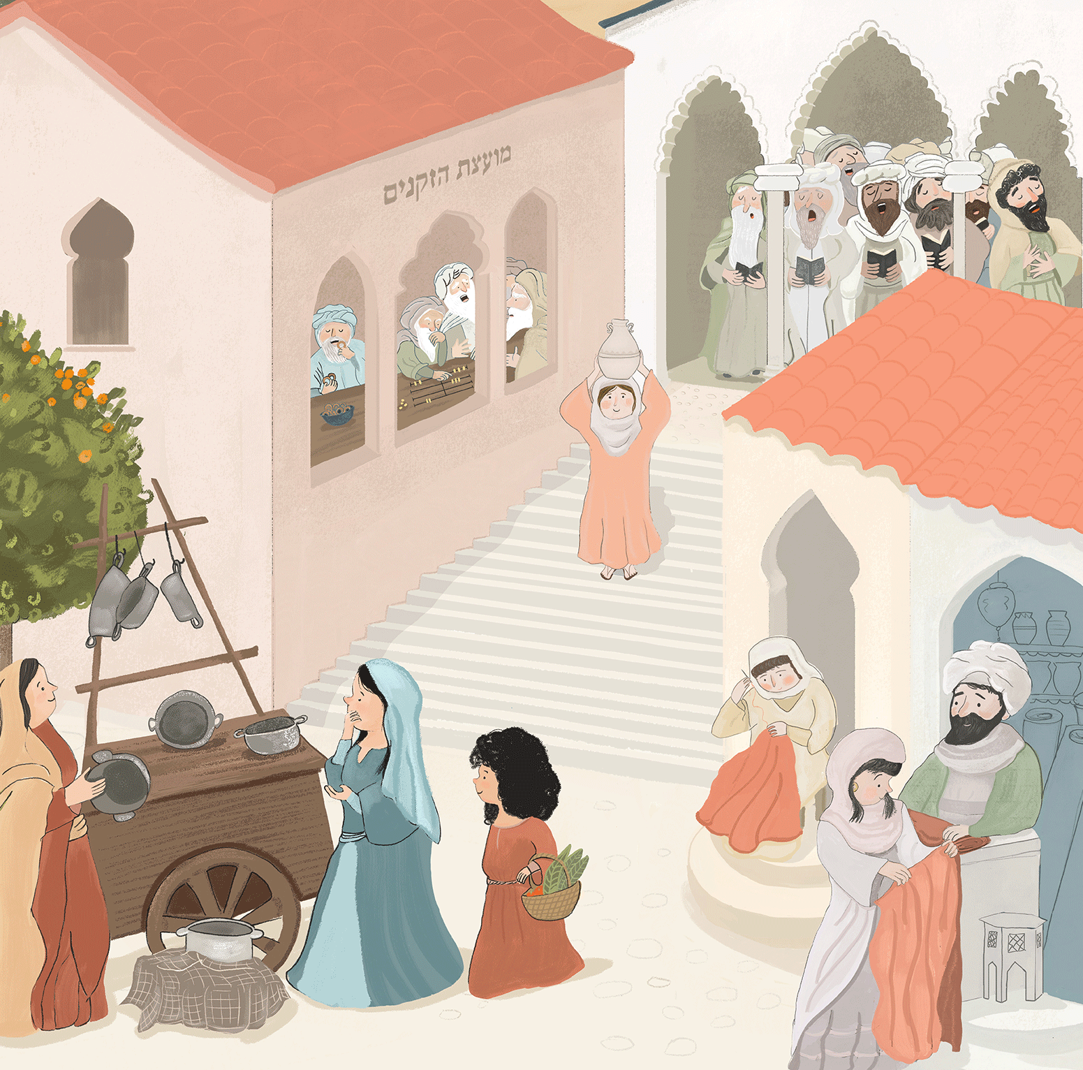 Mural illustrations describes the life of the jewish community at medieval times, in Sepharad and Ashkenaz.